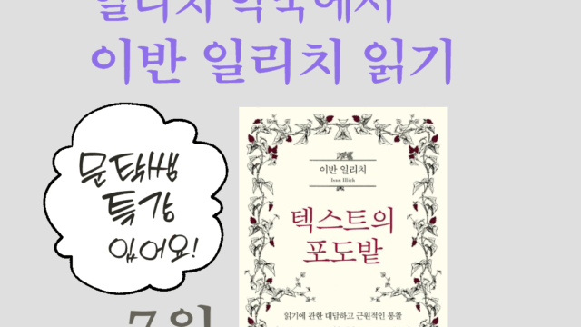 모집중일리치약국에서 이반 일리치 읽기7월 <텍스트의 포도밭> 줌세미나 모집합니다 (12)7월 7일~21일(3회) 월요일 저녁 8시포도를 하나하나 맛보듯 음미하는 읽기와 쓰기 -