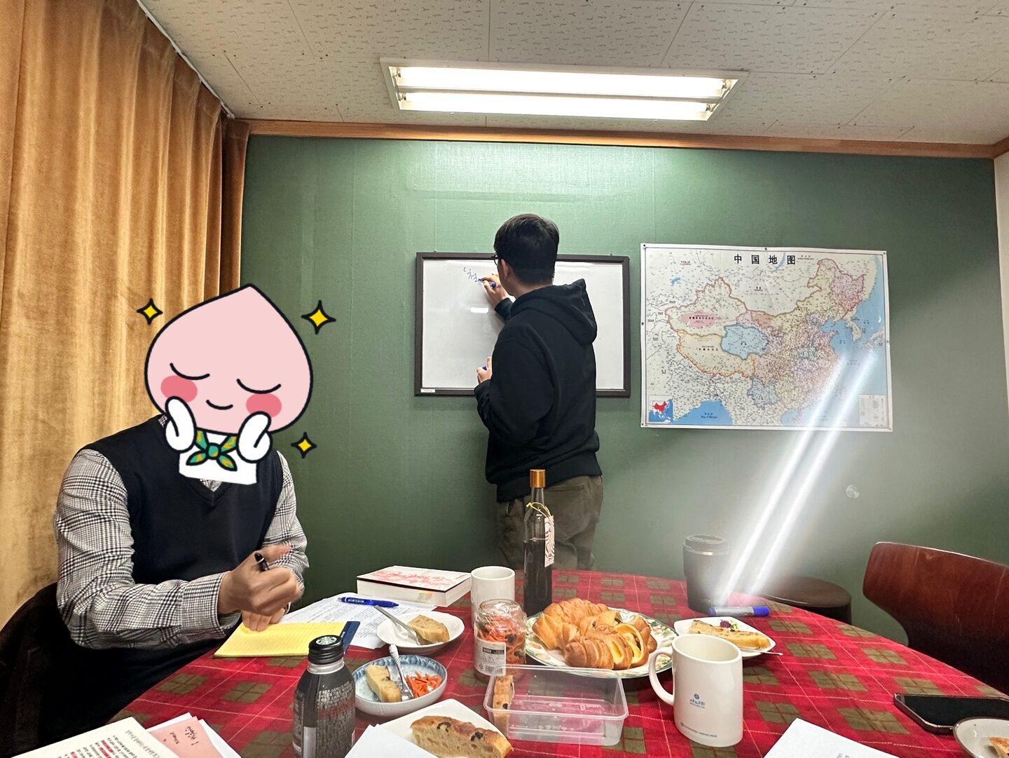 보라방에는 이렇게 원형테이블이 있어서 둘러앉아 세미나하기 딱 좋았답니다.