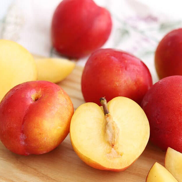 요런 자두입니다. 겉 색깔은 선홍빛을 띠고 속이 노란 자두. 물이 많고 새콤함은 덜 하고 달디단... 자두.