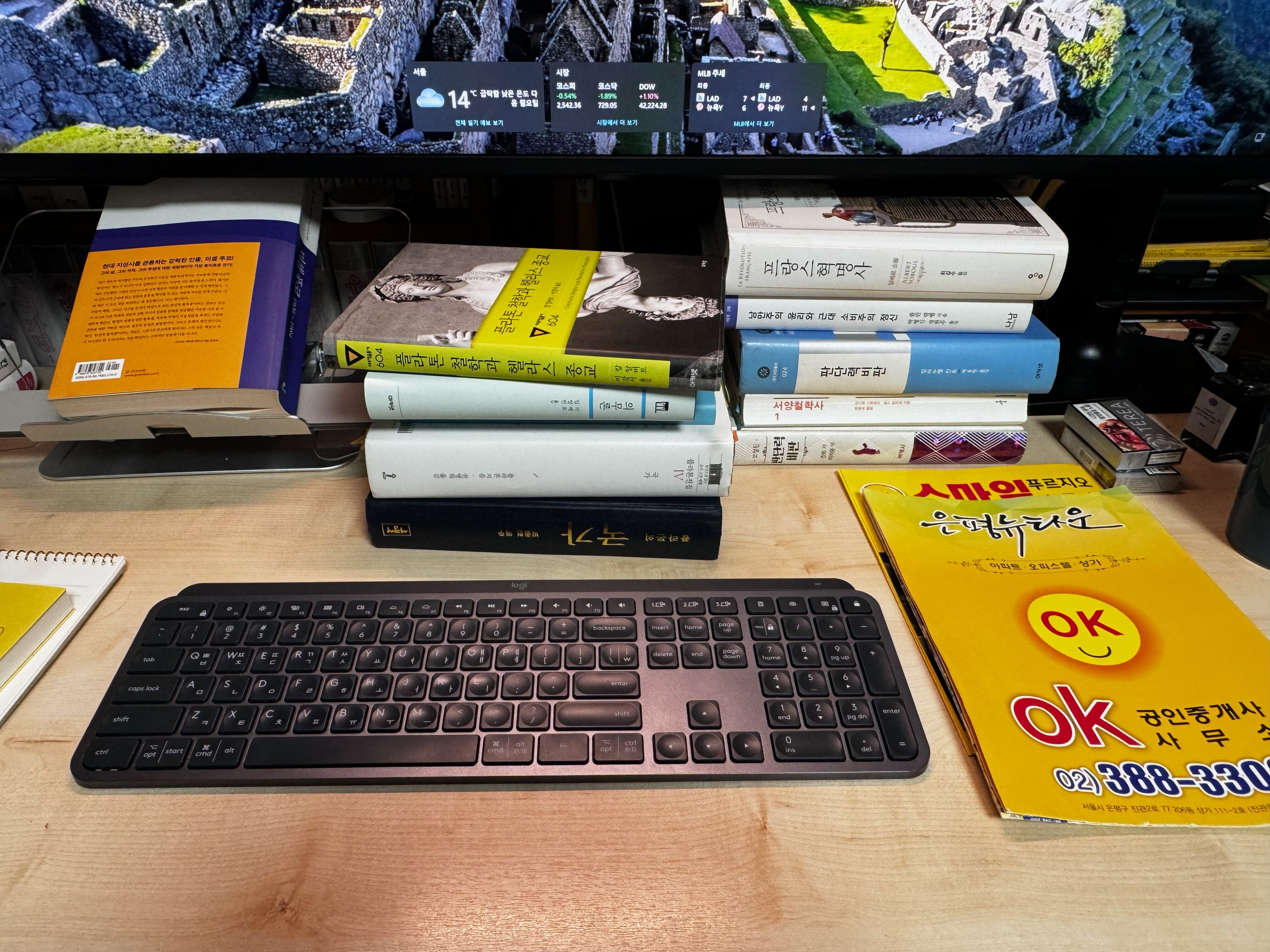책상을 보니 일상이 딱 책상에 압축되어 있습니다.