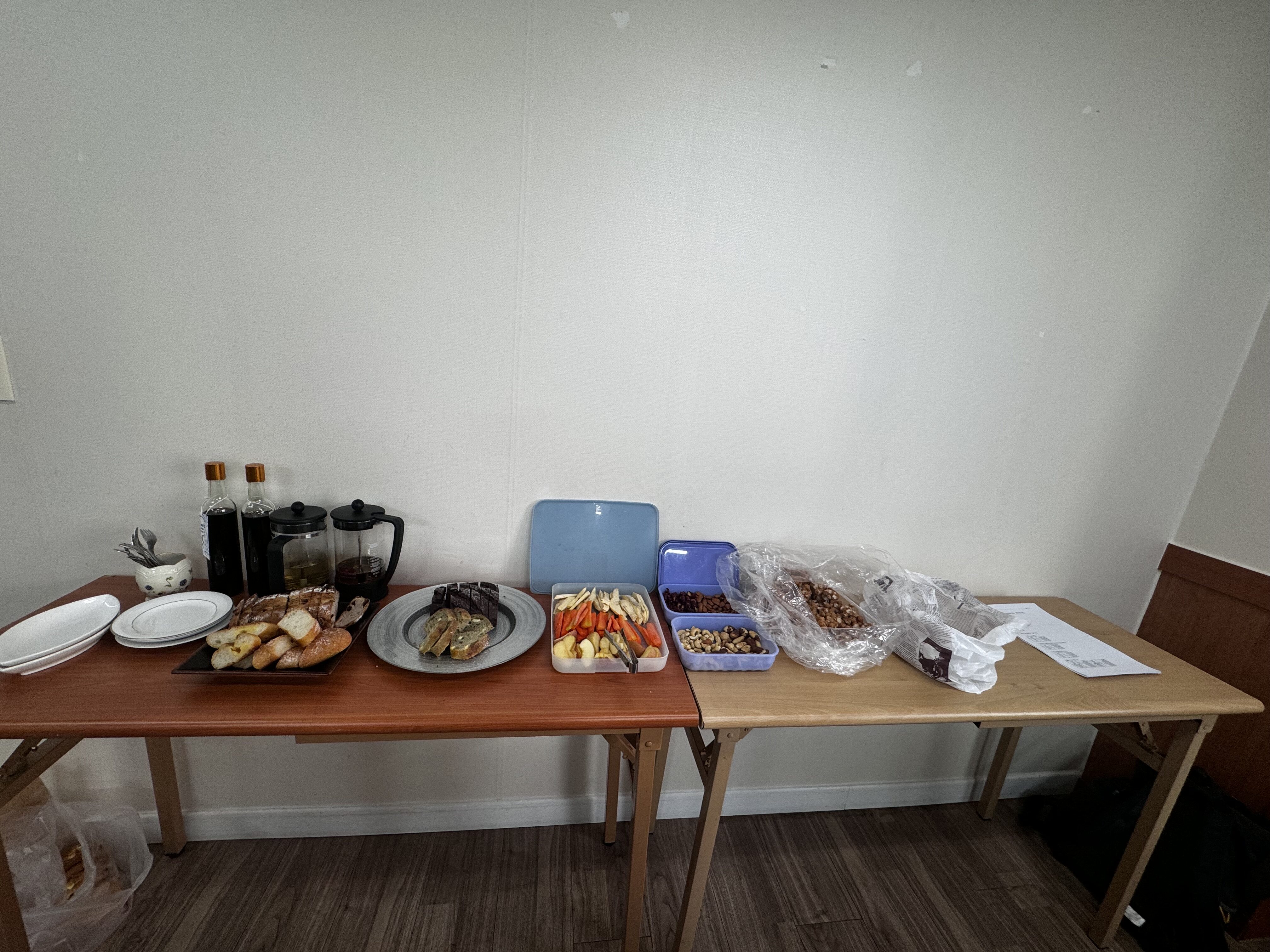 간식이 착착 준비되었고요. 사실 회의할 때는 일부러라도 아무것도 안 먹고 싶은데... 문탁에선 그게 안 되요.