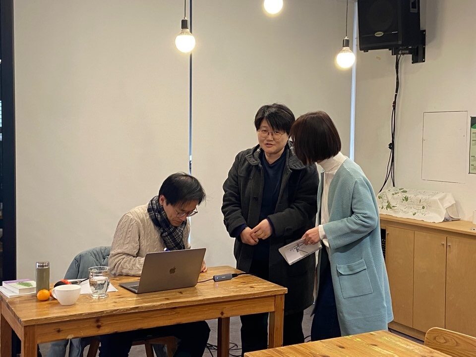 연구에 전념하고 계셔서 부담스럽다고 하시면서도 기꺼이 응해주셔서. “난생처음” 하는 강사섭외 미션을 무사히 완수하고 얼떨떨하게 강좌진행까지 하게 되었다. 10년만에 오프라인으로 고병권샘의 조근조근 강의를 듣고 궁금했던 것을 묻고 나누는 사이 시간이 후다닥 가버려서 아쉬웠다. 십년 사이 자본주의 세상은 더 험악해진 것 같지만 내 마음에 세상을 어떻게 담을 지 조금은 정리가 되는 시간이었다. (자세한 내용은 기린의 후기 참고 https://moontaknet.com/?kboard_content_redirect=46037 )