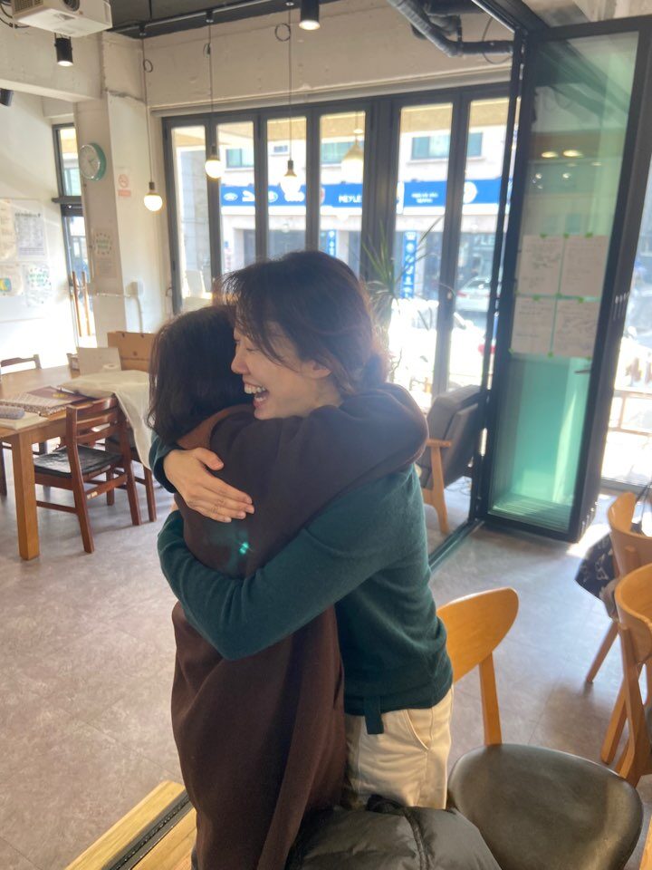 매일 만나 공부도 하고 일도 하는 곳이지만, 무엇보다 서로의 연약함을 숨기지 않고 기꺼이 서로의 생에 개입하는 구체적인 현장이 나에겐 있다. (나로서는) 포옹이라는 낯설고 익숙하지 않은 행위에도 서로를 기꺼이 내어주는 실험(?)이 가능한 곳이다. 그날 찍은 사진들을 들여다보면서 미소를 짓는다. 한 발 떨어져 사진을 찍은 나조차도 이미 그 속에 묻어 들어가 있는 것이다. 고병권샘이 말했던 목격이란 것이 이런 것이겠지. 거기에 연루되는 것...