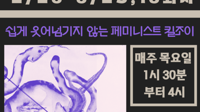 모집페미니즘세미나[시즌1]쉽게 웃어넘기지 않는 페미니스트 킬조이 (4)2026년 2월 26일~6월 25일16주간 매주 목요일 1시반 -