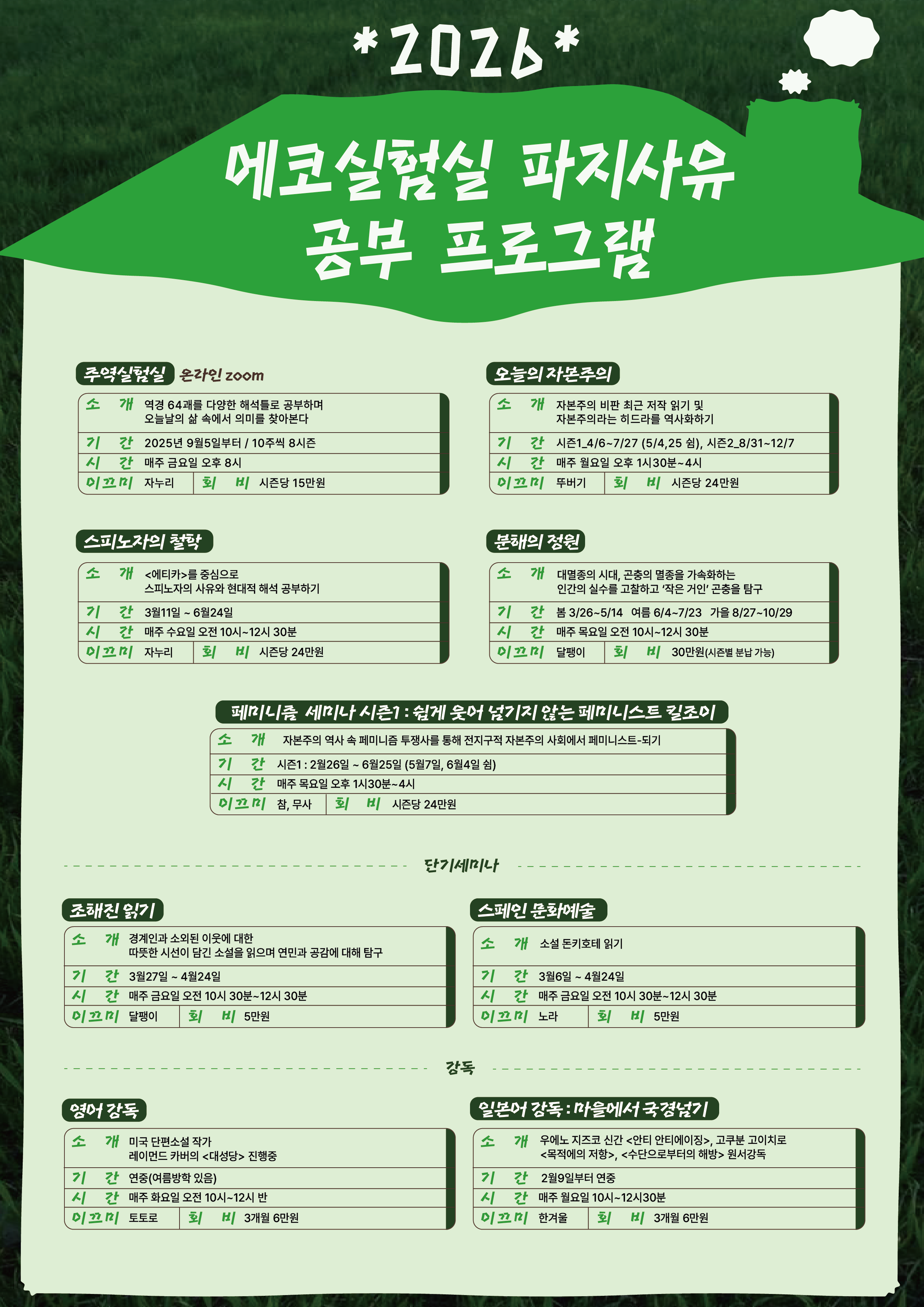 3/27부터 4/24까지 5회 단기세미나 같이 해요^^
